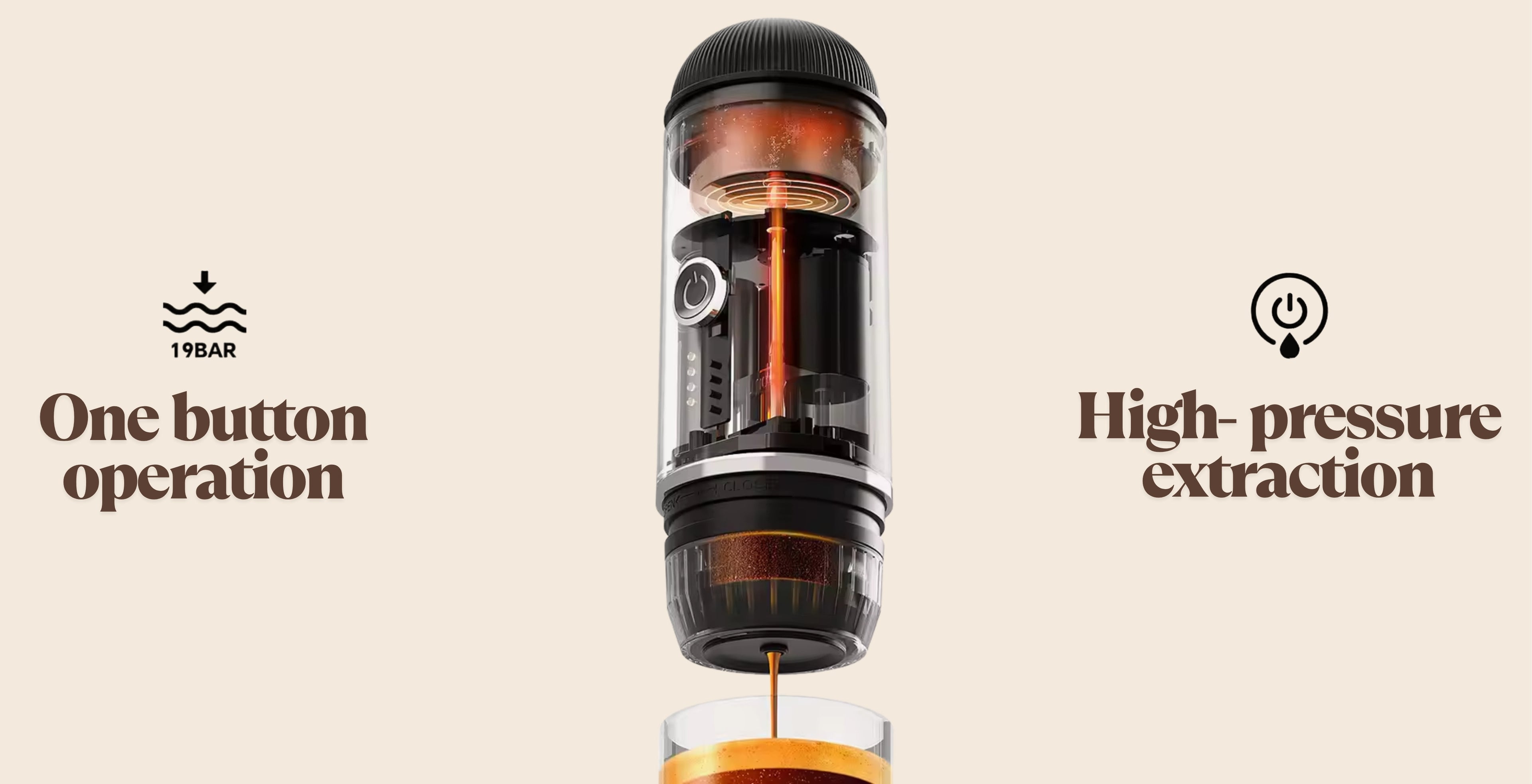 Experience barista-level coffee with our cordless, travel-ready espresso machine — designed for life on the go.